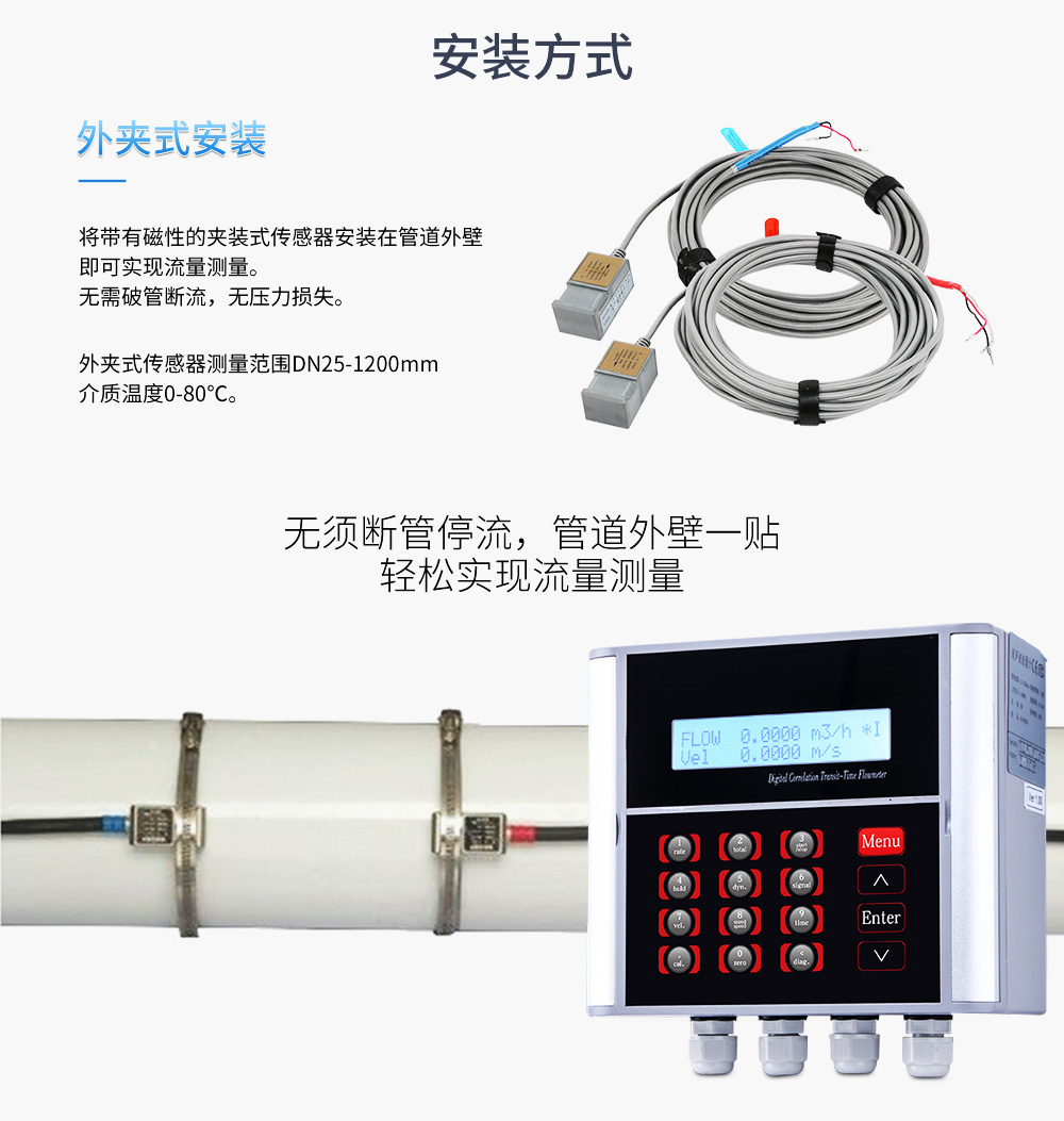 外夾式或者管段式超聲波流量?jī)x表是以"速度差法"為原理,測(cè)量圓管內(nèi)液體流量的儀表。它采用了先進(jìn)的多脈沖技術(shù)、信號(hào)數(shù)字化處理技術(shù)及糾錯(cuò)技術(shù),使流量?jī)x表更能適應(yīng)工業(yè)現(xiàn)場(chǎng)的環(huán)境,計(jì)量更方便、經(jīng)濟(jì)、準(zhǔn)確。產(chǎn)品達(dá)到國(guó)內(nèi)外先進(jìn)水平,可廣泛應(yīng)用于石油、化工、冶金、電力、給排水等領(lǐng)域。