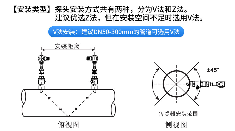 外夾壁掛式超聲波流量計利用了低電壓,多脈沖時差原理