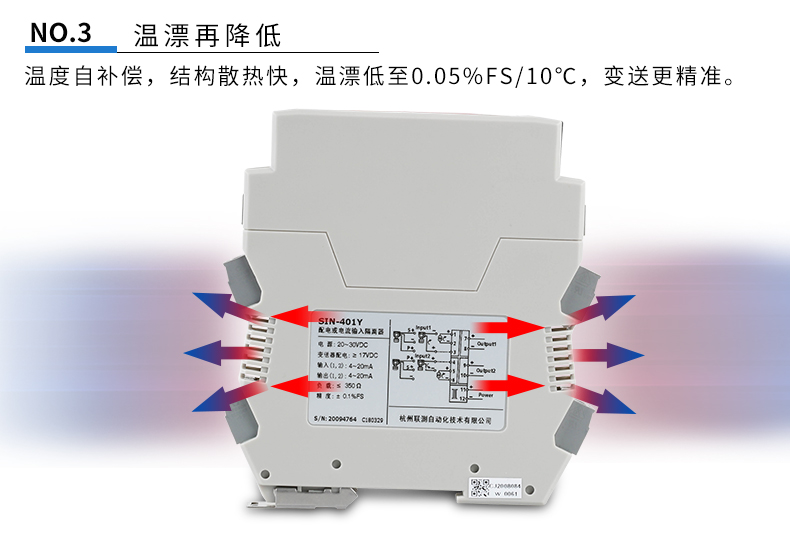 信號隔離器是一種信號隔離裝置,將輸入單路或雙路電流或電壓信號,變送輸出隔離的單路或雙路線性的電流或電壓信號,并提高輸入、輸出、電源之間的電氣隔離性能。