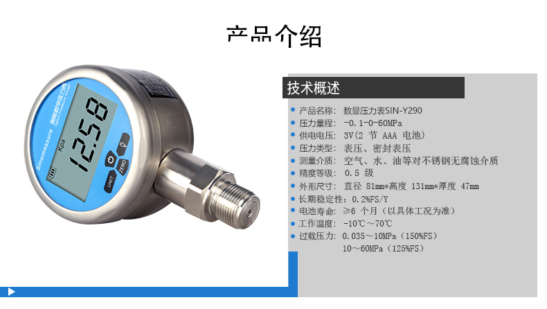 聯(lián)測數(shù)顯壓力表Y290,內(nèi)置高精度壓力傳感器,能夠 準(zhǔn)確的實(shí)時顯示壓力