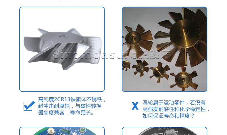 流體流經(jīng)傳感器殼體,由于葉輪的葉片與流向有一定的角度,流體的沖力使葉片具有轉(zhuǎn)動(dòng)力矩,克服摩擦力矩和流體阻力之后葉片旋轉(zhuǎn),在力矩平衡后轉(zhuǎn)速穩(wěn)定,在一定的條件下,轉(zhuǎn)速與流速成正比,由于葉片有導(dǎo)磁性,它處于信號(hào)檢測(cè)器(由永久磁鋼和線圈組成)的磁場(chǎng)中,旋轉(zhuǎn)的葉片切割磁力線,周期性的改變著線圈的磁通量,從而使線圈兩端感應(yīng)出電脈沖信號(hào),此信號(hào)經(jīng)過放大器的放大整形,形成有一定幅度的連續(xù)的矩形脈沖波,可遠(yuǎn)傳至顯示儀表,顯示出流體的瞬時(shí)流量或總量。