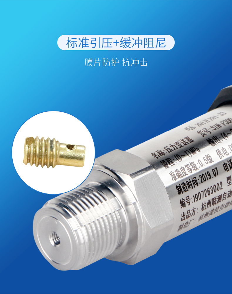 SIN-P300通用型壓力變送器德國進口硅芯片,精度高性能穩定;SIN-P300型通用型壓力變送器采用擴散硅壓力芯體作為敏感元件,內置處理電路將傳感器毫伏信號轉換成標準電壓﹑電流信號輸出,可直接與計算機、控制儀表﹑顯示儀表等相連。選用高穩定性和高可靠性的壓阻式壓力傳感器和高性能的變送器專用電路,整體性能穩定可靠,可進行遠距離信號傳輸。采用一體化全不銹鋼結構,經過多次不銹鋼焊接,實現了全固態設計,安裝方便,具有高抗振性和抗沖擊性,在惡劣環境中可以長期使用。廣泛應用于工業自動化設備配套以及石油、化工、冶金、電力等控制領域。