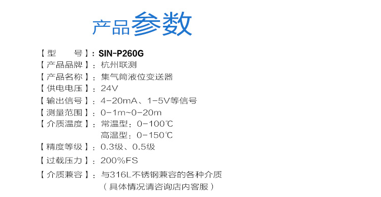集氣桶式液位變送器(下稱變送器)用于測量較高溫度液體介質(zhì)的液位,原理是被測液體介質(zhì)壓縮集氣桶內(nèi)的空氣,空氣壓力通過毛細管傳遞給敏感元件,敏感元件本身不與被測介質(zhì)直接接觸,因此變送器可以應(yīng)用在較高溫度的介質(zhì)環(huán)境中,同時,內(nèi)置微型信號放大處理電路,可以直接與計算機接口卡、控制儀表、智能儀表或 PLC 等連接,進行遠程傳輸。變送器廣泛應(yīng)用于環(huán)保、水利、供水、工業(yè)過程控制、變頻供水等較高溫度介質(zhì)的液位測量。