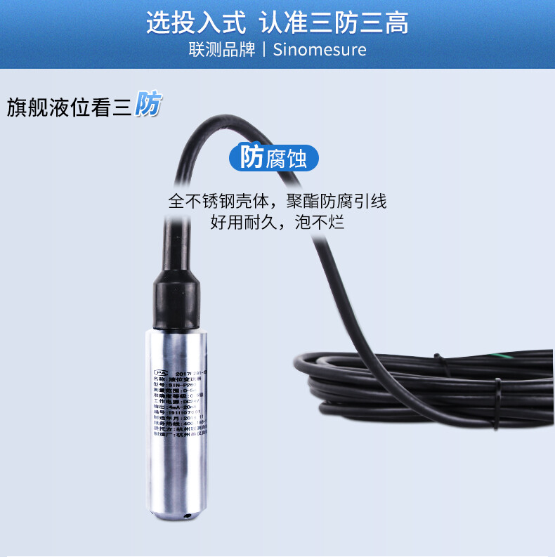 SIN-P260/P2600投入式液位變送器由高性能擴散硅壓阻式壓力傳感器作為測量元件,把與液位深度成正比的液體靜壓力準確測量出來