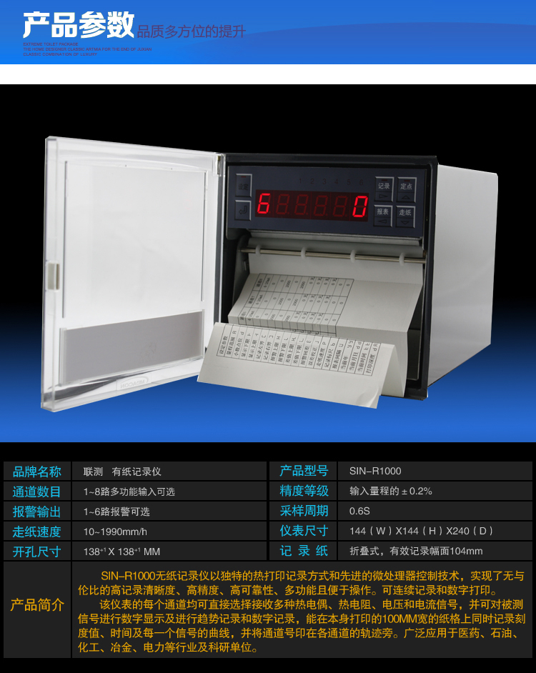 您的位置: 首頁 > 有紙記錄儀 >聯測_SIN-R1000_1-8點有紙/打印/曲線記錄儀電流電壓溫度/滅菌FO值